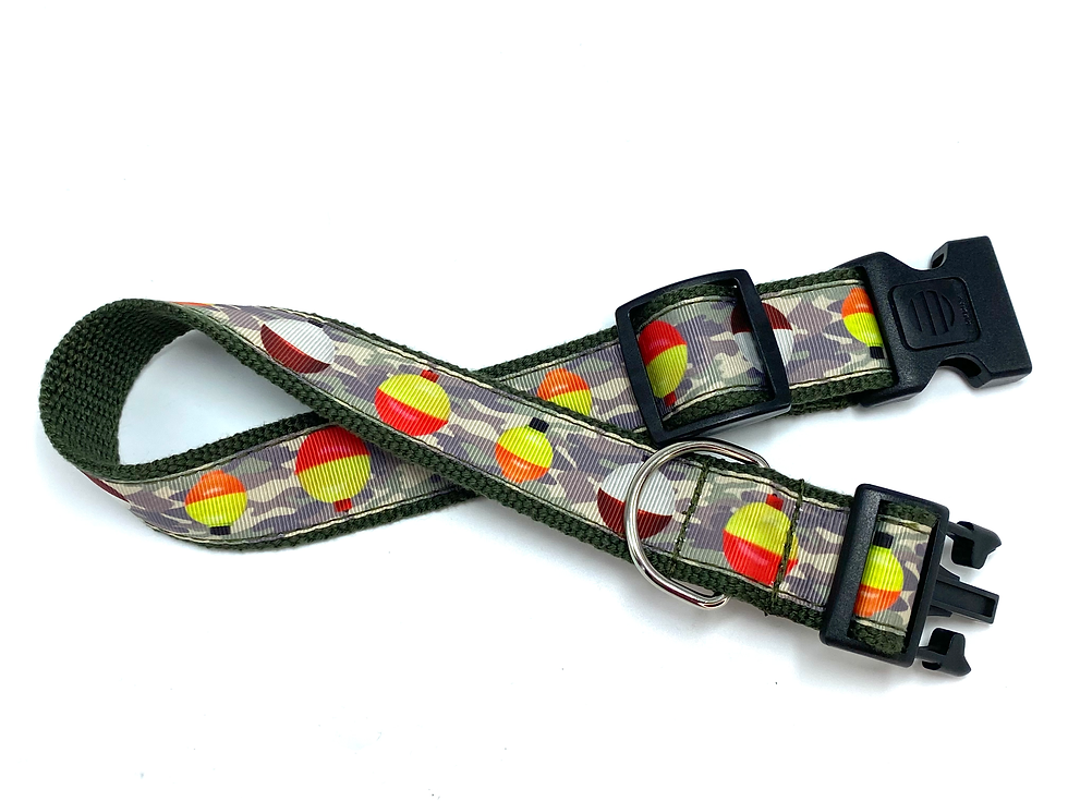 1 1/4 inch Camo Fishing Bobbers Dog Collar or Leash